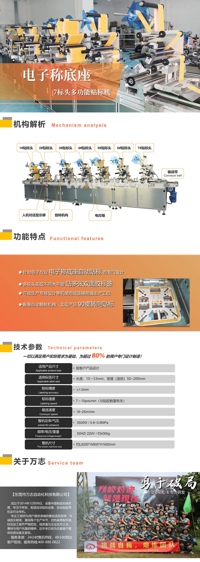 專用於電子稱底座表(biǎo)麵貼標/3M膠標簽,配置7個(gè)標頭,含自動旋轉角度功能實現在不同位置貼多(duō)條膠的功能;