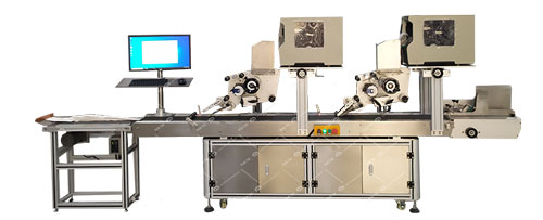 吊牌在線打印貼標機適用於平麵產品實時打印貼標,如卡片、吊牌(pái)、未成型(xíng)紙盒、包裝袋子等,雙標頭設計實現在同一產品不同水(shuǐ)平位置同時貼2張或(huò)多張標(biāo)簽;打印係統對接數據庫,邊打(dǎ)印邊貼標,如打印條碼、價格等內容,廣泛應用於(yú)印刷品的平麵打印貼(tiē)標;