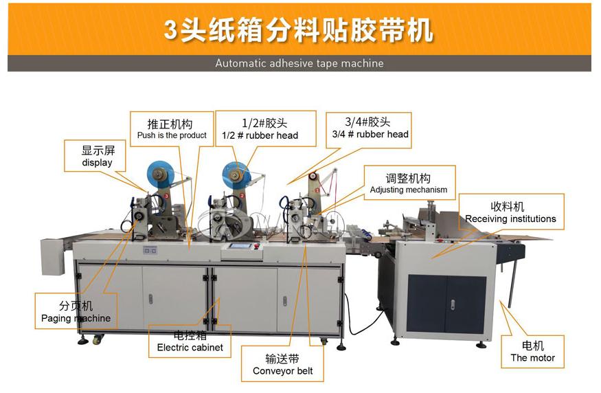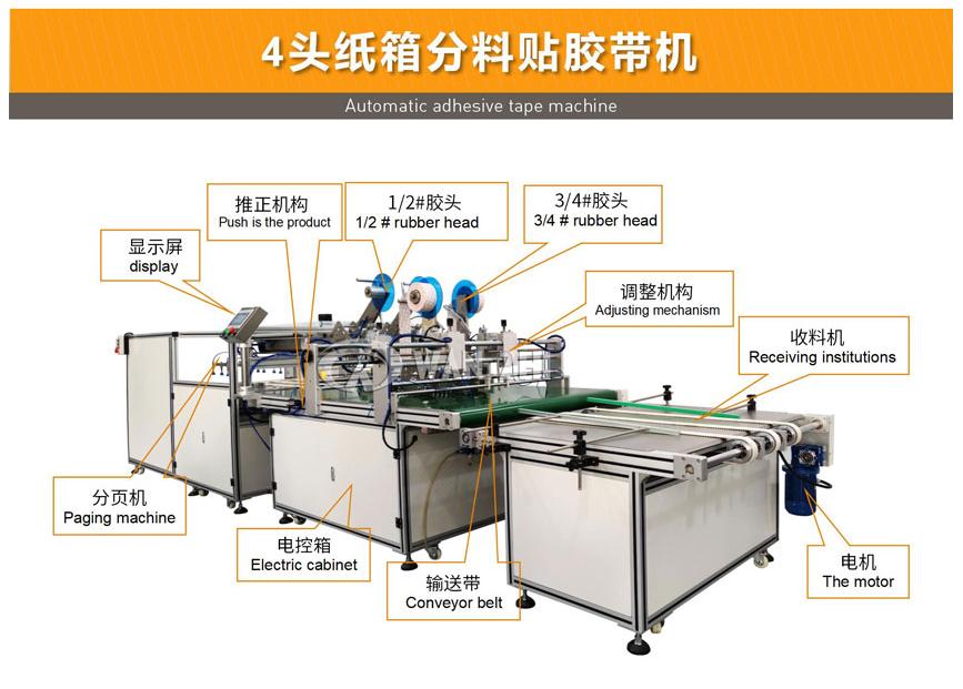 可配置2-4個貼膠頭(tóu),實(shí)現(xiàn)輸送方向同時(shí)貼2條膠帶,貼合(hé)長度可任意設定;貼膠(jiāo)頭可根據用(yòng)戶需求選(xuǎn)配;設備可選自動分料/收料機構,工作效率約50-90m/min(效率與(yǔ)產品尺寸有關);